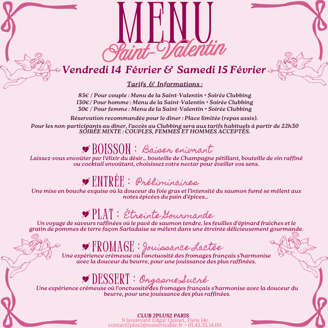 Menu Saint-Valentin & Accès à la soirée clubbing